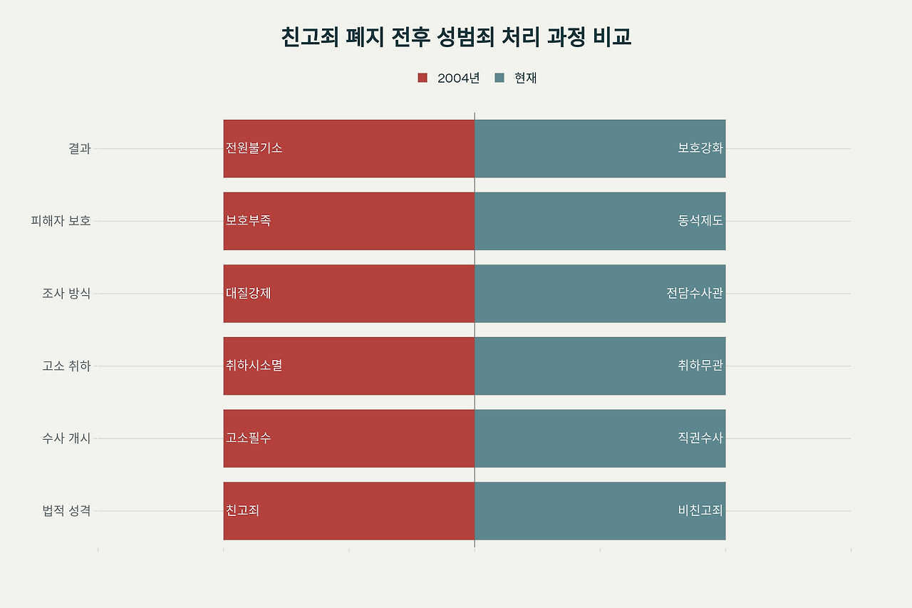 2004년 단역배우 사건 당시와 현재의 성범죄 처리 과정 비교표