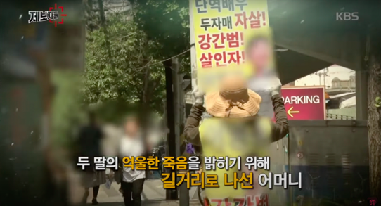 장씨는 2014년부터 가해자들이 근무하는 건물 앞에서 1인 시위를 시작했다."기획사 반장들 단역배우 강간 성폭력 두 자매 자살"이라고 쓰인 긴 몸자보를 걸치고, "청와대 청원을 부탁드립니다"라는 피켓을 들었다.