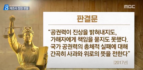"법원은 공권력의 한 부분으로서 공권력의 총체적 실패를 자책하고 반성한다"