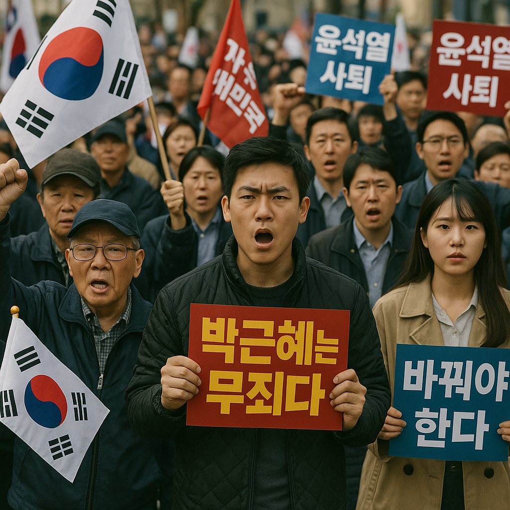 정치적 극우 포퓰리즘을 상징하는 추상적 이미지한국 정치는 전례 없는 극우화 현상을 목격하고 있다. 부정선거론을 주장하는 전한길씨의 국민의힘 입당과 "계몽령"을 주장한 김계리 변호사의