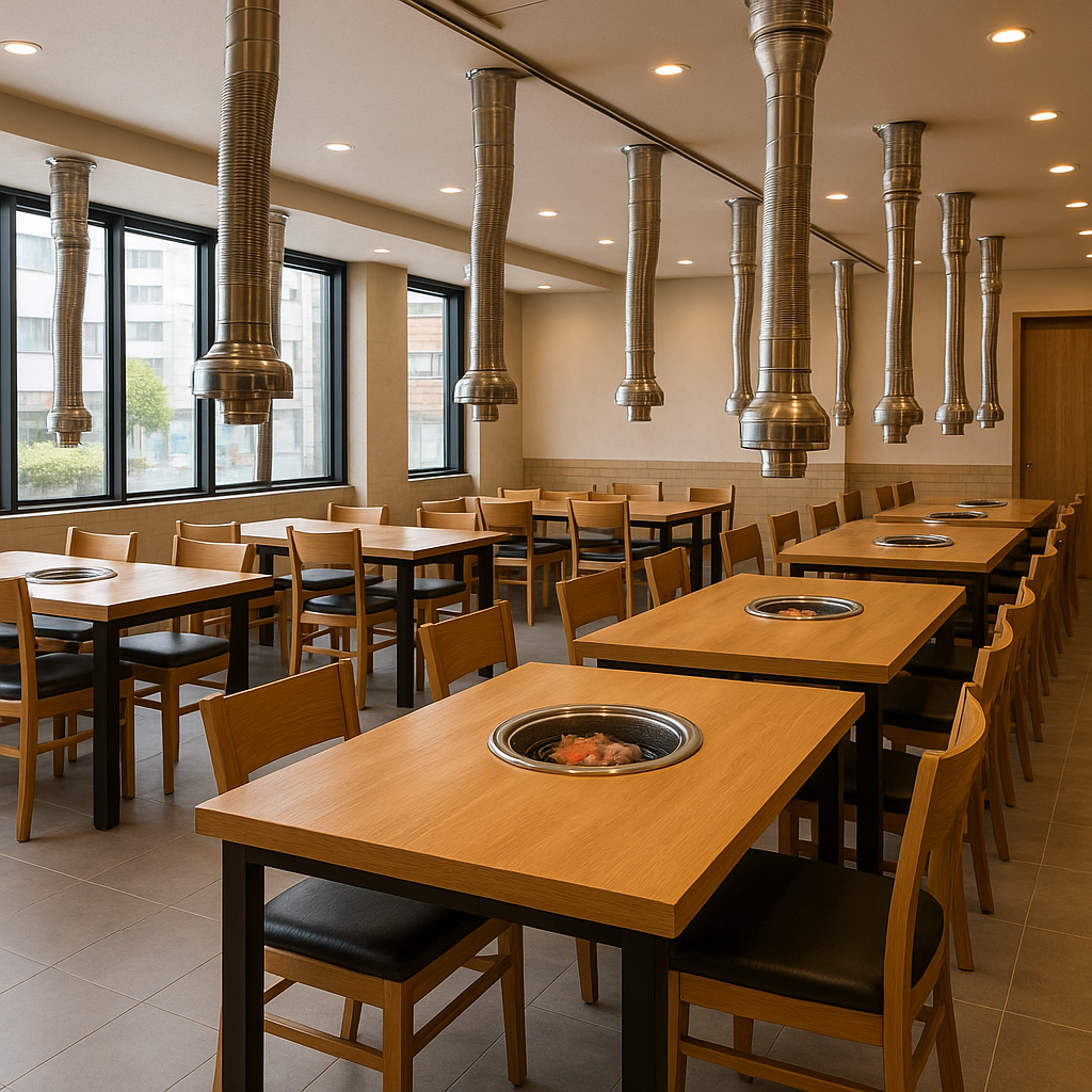 - 170석 규모, 테이블당 무쇠 플레이트·숯통·가스플레이트 이중 장착