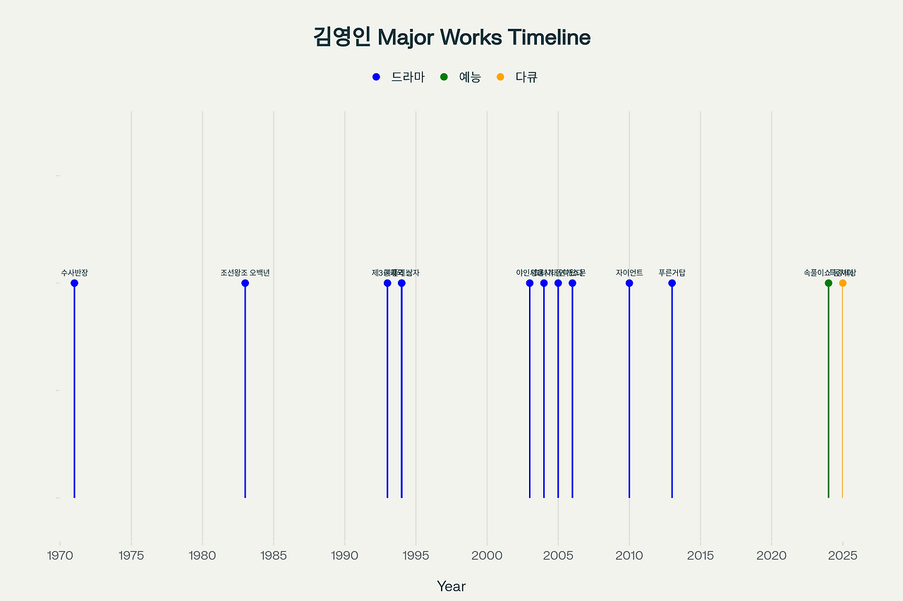 아래 차트는 1971년부터 2025년까지 굵직한 작품을 한눈에 보여준다.