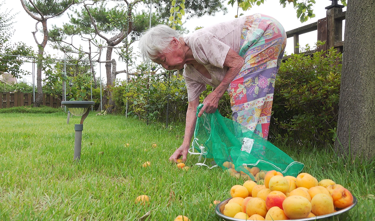 - 뜨거운 여름 햇볕 아래서 잡초를 뽑는 할머니의 모습