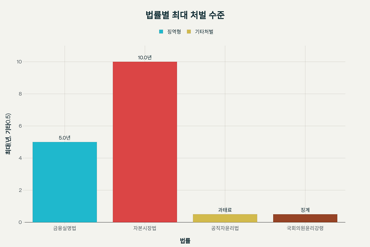 금융실명거래법은 모든 금융거래를 실명으로만 할 수 있도록 규정하고 있다. 이춘석 의원이 보좌관 명의 계좌를 통해 주식거래를 했다면 차명거래에 해당하며, 이는 5년 이하 징역 또는 5천만원 이하 벌금에 처해질 수 있다.