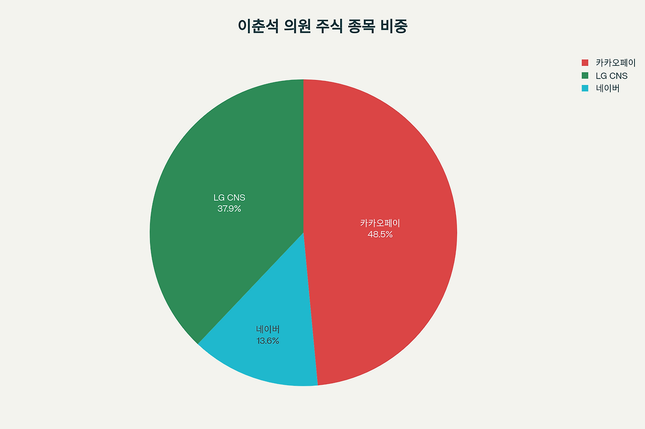 이춘석 의원은 국정기획위원회 경제2분과장으로서 AI 정책을 직접 담당했다. 동시에 AI 관련주인 네이버와 LG CNS 주식을 보유했다는 것은 명백한 이해충돌이다. 정책 결정자가 해당 정책의 수혜 기업 주식을 보유하는 것은 정책의 공정성과 객관성을 심각하게 훼손한다.