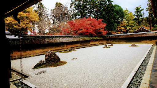 료안지는 15세기 경 지어져 선(禅) 불교의 가레산스이(枯山水) 양식을 극대화한 유명한 암석 정원을 보유한 사찰이다. 흰 자갈과 15개의 바위가 배치된 정원은 관람 포인트에 따라 보이는 바위의 수가 달라지도록 설계되어 있어, 명상과 사색을 돕는 공간으로 평가된다.